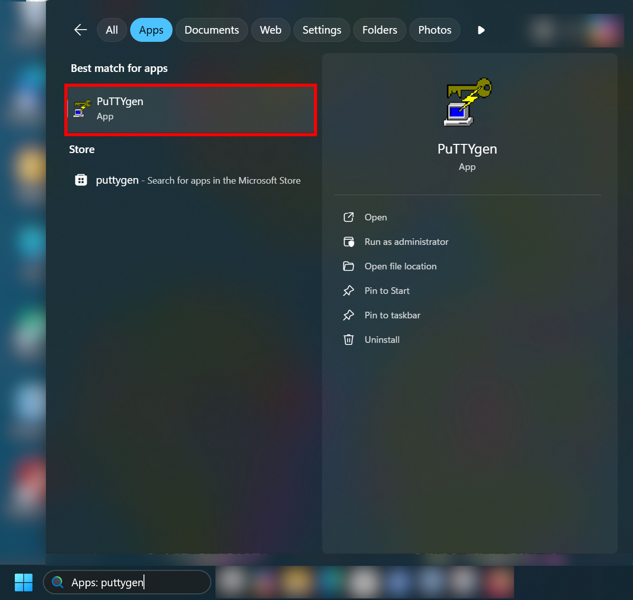 PuTTYgen can be found by using search box (Windows Search).